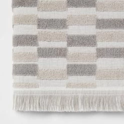 Square Honeycomb 100% Cotton Reversible Bath Rug Silver By Knightsbridge