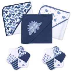 The Peanutshell 3pk Baby Hooded Bath Towels And 20pk Washcloths Bath Set, 23-Piece, Blue Dino