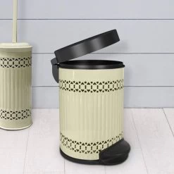 Laser Cut Ivory Step Garbage Trash Can & Toilet Brush Holder With Lid Ivory – Nu Steel