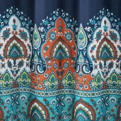 Function meets fashion with this bold boho design in lively colors. Give your bathroom a quick, easy and affordable makeover with Lush Décor’s Bohemian Meadow Shower Curtain 14 Piece Complete Set. The Bohemian Meadow Shower Curtain 14 Piece Complete Set includes everything you need for your shower together in one package: the bohemian style shower curtain, PEVA liner and plastic rings for hanging them. The rings measure 2.2 inches in diameter, and we add in two extra rings for your convenience. If you love a colorful boho style for your bathroom, our Bohemian Meadow Shower Curtain 14 Piece Complete Set is for you. Printed on Microfiber, this set truly stands out and would look excellent in a teen’s bathroom, guest bathroom or a master bathroom. Either color option will truly brighten your space and your day. The shower curtain measures 72 inches on all sides and should easily fit nearly any bathtub. It may not be large enough for a claw foot tub. For your convenience, this shower curtain is safe to machine wash and tumble dry. Please follow all instructions on the product’s care label. Part of the Bohemian Meadow Collection.