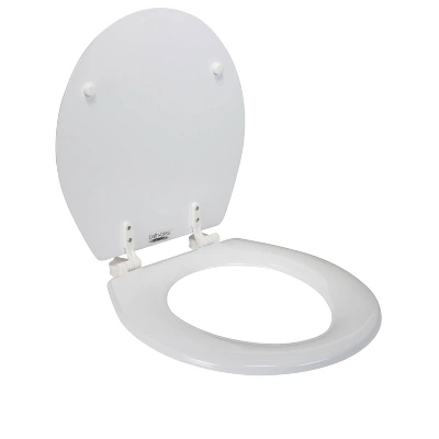 Your toilet will look brand new with the Bath Bliss beveled toilet seat. The 16.5″ toilet seat fits standard round toilets. Comes complete with all hardware for easy installation. Designed with premium MDF wood, 3 coats of lacquer to prevent peeling and chipping making this seat sure to last. The adjustable non-slip hinges keeps seat in place without slide off toilet bowl. Giving your bathroom a whole new makeover, be sure to replace your toilet seat when its time for an upgrade!