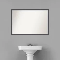 Give your bathroom the finishing touch with this Non-Beveled Wall Mirror framed with the Eva Black Silver Thin frame. Individually made using traditional custom framing techniques, it has the quality you would expect from your local frame shop. It holds its value with premium finishing that can be appreciated up close. Because of our attention to detail and focus on artistry, architects, interior designers, and homeowners alike choose this mirror to create beautiful living spaces.
