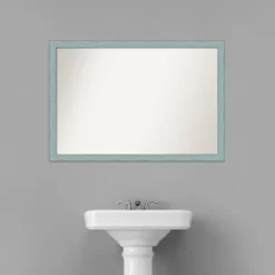 Give your bathroom the finishing touch with this 100% real wood Non-Beveled Wall Mirror framed with the Sky Blue Rustic frame. Individually made using traditional custom framing techniques, it has the quality you would expect from your local frame shop. It holds its value with premium finishing that can be appreciated up close. Because of our attention to detail and focus on artistry, architects, interior designers, and homeowners alike choose this mirror to create beautiful living spaces.
