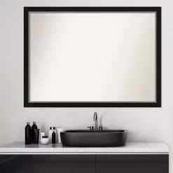 Give your bathroom the finishing touch with this Non-Beveled Wall Mirror framed with the Eva Black Silver Narrow frame. Individually made using traditional custom framing techniques, it has the quality you would expect from your local frame shop. It holds its value with premium finishing that can be appreciated up close. Because of our attention to detail and focus on artistry, architects, interior designers, and homeowners alike choose this mirror to create beautiful living spaces.