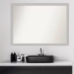 Give your bathroom the finishing touch with this 100% real wood Non-Beveled Wall Mirror framed with the Low Luster Silver frame. Individually made using traditional custom framing techniques, it has the quality you would expect from your local frame shop. It holds its value with premium finishing that can be appreciated up close. Because of our attention to detail and focus on artistry, architects, interior designers, and homeowners alike choose this mirror to create beautiful living spaces.