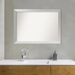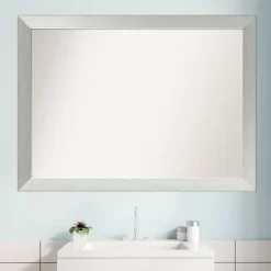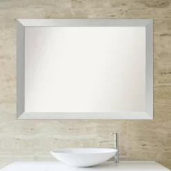 Give your bathroom the finishing touch with this 100% real wood Non-Beveled Wall Mirror framed with the Brushed Sterling Silver frame. Individually made using traditional custom framing techniques, it has the quality you would expect from your local frame shop. It holds its value with premium finishing that can be appreciated up close. Because of our attention to detail and focus on artistry, architects, interior designers, and homeowners alike choose this mirror to create beautiful living spaces.
