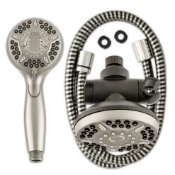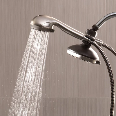 With this Brushed Nickel Waterpik PowerPulse 6+6 Dual Shower Head XET-639E/649E and 3-way diverter, you can choose the convenience of a hand held shower head, the relaxing full body coverage of the large rainfall shower head, or both at the same time.