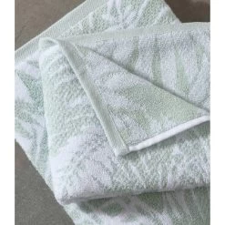 - Bath towels- 54″L x 28″W, hand towels- 28″L x 16″W, washcloths- 13″L x 13″W Features a gorgeous green and white leaf design