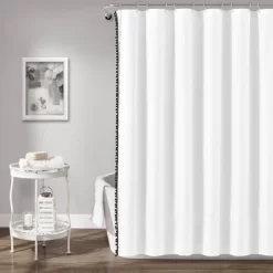 Farmhouse Boho Striped Woven Tassel Yarn Dyed Cotton Shower Curtain Ivory/Black – Lush DĂ©cor