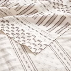 Give your bathroom a farmhouse vibe with the INK+IVY Rhea Cotton Jacquard Shower Curtain. This 100% cotton shower curtain features a clipped jacquard detailing with horizontal stripes on an soft ground, while the eyelash-looking woven accent adds a charming textural touch for a sophisticated look. Machine washable for easy care, this shower curtain is also OEKO-TEX certified meaning it does not contain any harmful substances or chemicals, for the best in quality comfort and wellness. Each shower curtain measure 72″x72″ and is finished with 12 button holes at the top making it easy to hang; hooks, rod, and a water repellant liner are not included and will need to be purchased separately. Complete the look with coordinating bedding, available and sold separately.