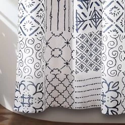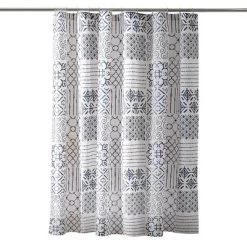Uniquely blending nine distinct pattern variations, Lush Decor’s Monique Shower Curtain will complement any style in your home. Our Monique Shower Curtain features a blue and white patchwork design of geometric patterns printed on microfiber. The look will help you bring farmhouse style to your master or guest bathroom. The Monique Shower Curtain measures 72 inches on each side. It’s the perfect size for most standard bathtubs. It hangs easily with any shower curtain hooks or rings. This Monique Shower Curtain cleans up easily, as it is safe to machine wash and tumble dry on a low setting. Please read all instructions on the label before washing. Part of the Monique Collection.