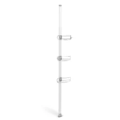 De-clutter your shower space! This stainless steel tension shower caddy provides a durable, space-efficient storage solution for virtually any shower or bath. Its reinforced aluminum pole with high-compression spring fits securely between your floor and ceiling (extends 5 to 8 feet). Three adjustable wire-frame shelves slide up and down the aluminum pole to hold all your shower essentials. Made from completely corrosion-resistant materials.