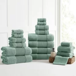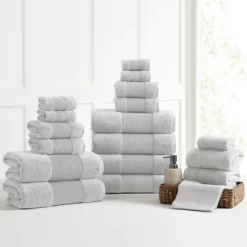 Bring vigor back to your bathroom with the 18-Piece Air Cloud Bath towel set. They are made from loops of soft 100% cotton with a zero-twist weave that quickly absorbs water. These striking pieces come in a variety of colors that complement your bathroom. The plush bath towel set offers a lighter weight, fluffy softness, and quick absorbency, which means ultimate comfort and fast results when drying your hands and face after washing up or drying off after stepping out of a hot shower. Finding a quality bath towel that combines luxury softness and ultimate absorbency can be hard to come by these days, especially at an affordable price, but with Amrapur Overseas’s incredible bath line we’ve given you all that and so much more.