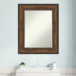 - MIRROR DETAILS: This mirror features premium glass for a clear, undistorted image and is finished with a petite 1/2-inch beveled edge which is more delicate than a traditional bevel. The overall size of this bathroom mirror measures 25.5 x 31.5 inches, including the frame. Its reflective area measures 18 x 24 inches.