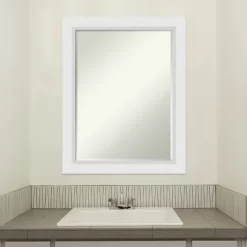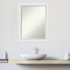 Give your bathroom the finishing touch with this 100% real wood Petite Bevel bathroom mirror. The Blanco White frame is a geometric white frame with a flat face and an angled inner edge with a smooth satin finish.. The frame is 2.25 in. wide and stands 1 in. off the wall. It’s Individually made using traditional custom framing techniques, it has the quality you expect from your local frame shop. It holds its value with premium finishing that can be appreciated up close. Because of our attention to detail and focus on artistry, architects, interior designers, and homeowners alike choose this mirror to create beautiful living spaces.