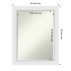 - MIRROR DETAILS: This mirror features premium glass for a clear, undistorted image and is finished with a petite 1/2-inch beveled edge which is more delicate than a traditional bevel. The overall size of this bathroom mirror measures 22 x 28 inches, including the frame. Its reflective area measures 18 x 24 inches.
