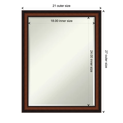 - MIRROR DETAILS: This mirror features premium glass for a clear, undistorted image and is finished with a petite 1/2-inch beveled edge which is more delicate than a traditional bevel. The overall size of this bathroom mirror measures 21 x 27 inches, including the frame. Its reflective area measures 18 x 24 inches.
