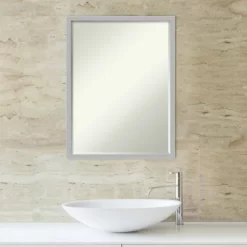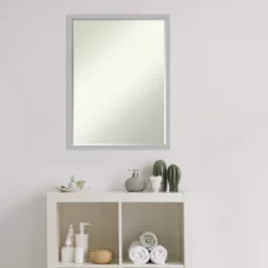 - MIRROR DETAILS: This mirror features premium glass for a clear, undistorted image and is finished with a petite 1/2-inch beveled edge which is more delicate than a traditional bevel. The overall size of this bathroom mirror measures 19 x 25 inches, including the frame. Its reflective area measures 18 x 24 inches.