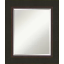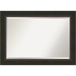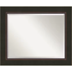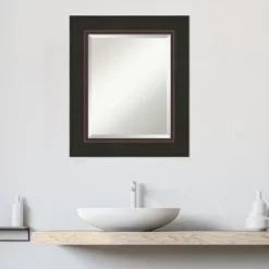 Give your bathroom the finishing touch with this 100% real wood Beveled bathroom mirror. The Milano Bronze frame is a wide, espresso frame with bronze gold brushstrokes on its flat surface and bronze highlight lines on the inner and outer edges.. The frame is 3.5 in. wide and stands 1.25 in. off the wall. It’s Individually made using traditional custom framing techniques, it has the quality you expect from your local frame shop. It holds its value with premium finishing that can be appreciated up close. Because of our attention to detail and focus on artistry, architects, interior designers, and homeowners alike choose this mirror to create beautiful living spaces.