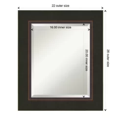 - MIRROR DETAILS: This mirror features premium glass for a clear, undistorted image and is finished with a beveled edge to give the glass a decorative touch. The overall size of this bathroom mirror measures 22.5 x 26.5 inches, including the frame. Its reflective area measures 16 x 20 inches.