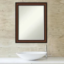 Give your bathroom the finishing touch with this Petite Bevel bathroom mirror. The Yale Walnut frame is a gently curved frame with slightly lifted outer ridge, cherry color finish with fine grain lines, and darker edges. The frame is 2 in. wide and stands 1.25 in. off the wall. It’s Individually made using traditional custom framing techniques, it has the quality you expect from your local frame shop. It holds its value with premium finishing that can be appreciated up close. Because of our attention to detail and focus on artistry, architects, interior designers, and homeowners alike choose this mirror to create beautiful living spaces.