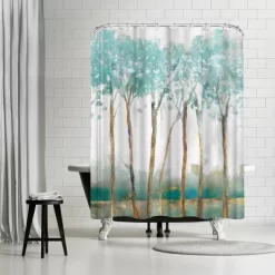 - Ready-To-Hang – featuring a cotton back loop with 12 holes for easy installation. Fits Most Standard-Sized Showers – Sized 71″ x 74. The shower curtain does not include a rod or liner. The use of a liner is recommended.