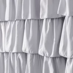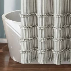 - Ready-To-Hang – featuring a cotton back loop with 12 holes for easy installation. Fits Most Standard-Sized Showers – Sized 71″ x 74. The shower curtain does not include a rod or liner. The use of a liner is recommended.