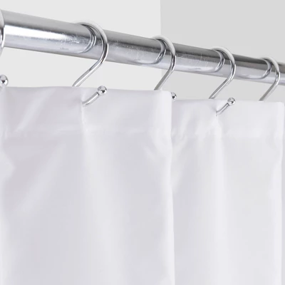 - Reinforced header with 12 buttonhole openings fits standard shower hooks (not included)