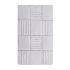 Designed to sit alongside your tub, shower, or sink and provide a comfortable, warm, dry spot for you to stand, the Knightsbridge rug will coordinate with infinite decorating styles. This beautiful solid-color checkboard design bath rug with a non-skid back is made of 100% cotton and is super soft and absorbent. It’s the ultimate in comfort and the wide array of colors will enhance any bathroom decor. Available colors: White, Ivory, and Silver. Measures: 17in x 24in