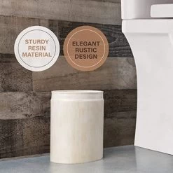 PUNCTUATE YOUR SPACE WITH RUSTIC BEAUTYFarmhouse EleganceIt will be the first thing your guests will notice. A charming addition to your home or office that will serve up timeless charm. Meet our Rustic Luxe decorative trash can – our modern take on a classic farmhouse aesthetic. With a serving of beige accentuated by streaks of color, this Basket exudes warmth & sophistication you’ll want to flaunt. And unlike metallic waste baskets ones that soon rust, or wooden ones that tend to crack, we’ve designed ours using premium resin. The result? Years of eye-catching durability.Versatility EpitomizedWhether you want to keep your bathroom organized or your living room decorated, clear the clutter off your vanity, or give your coffee table an elevated look, this beauty does your bidding. Feel free to use it in any room of your choice. Whatever you use it for, one thing’s for sure – the compliments won’t stop coming.Here’s why you’ll love this waste bin:- Sized to fit counters and elsewhere with ease.- The high-quality resin is easy to clean – just wipe.- The touch of beige blends into most spaces & decor.- Can be used to organize, beautify, or display prized pieces.- Great gift idea; especially when combined with other Rustic Luxe accessories.Go ahead, get your wastebasket and watch it transform your space with rustic elegance!- 10 x 6.5 x 8.25