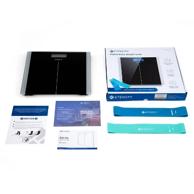 With its precision sensors, sturdy tempered glass, and slim design, the Etekcity Digital Body Weight Scale helps users set healthy goals and track their progress. The anti-skid padding ensures stability while you’re measuring your weight. The backlit LCD display clearly shows your results. Increase your fitness with 2 bonus resistance bands. The extra-large 11.8 x 11.8-inch platform provides a comfortable space to measure your weight. Etekcity’s weight scale is the perfect companion to help you keep track of your fitness progress and reach your personal weight goals. With the two bonus resistance bands you can track your fitness journey even more.