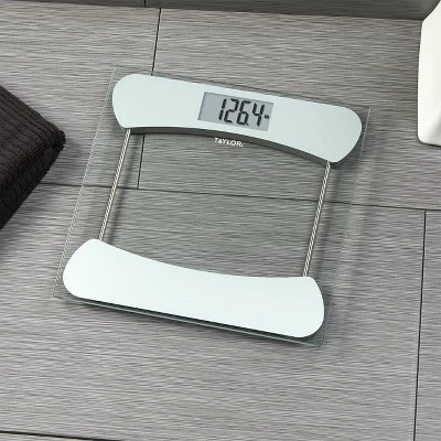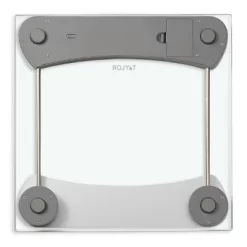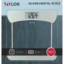 Beautifully styled with precision technology is featured with the Taylor 7549 Glass Digital Scale. Designed to accurately weigh and track differences in a stylish clean look, the Taylor 7549 will be an essential part of monitoring weight goals. Four precise sensors are surrounded by a silver base and stainless steel accents, and topped with a clear tempered glass platform will look great wherever it is used. A 11.8″ x 11.8″ platform provides foot stability for up to 400 lbs (180 kg) capacity. High 400 lb Capacity in 0.2 lb increments (lb/kg/st). Two AAA batteries included. Provided in the box are clear instructions, troubleshooting tips and details on the 5 year limited warranty.