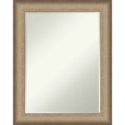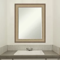 Give your bathroom the finishing touch with this Petite Bevel bathroom mirror. The Elegant Brushed Bronze frame is a wide, brushed metallic bronze frame that angles down from outer to inner edge. The outer edge has a slight swoop with a black satin finish. The frame is 2.75 in. wide and stands 1.25 in. off the wall. It’s Individually made using traditional custom framing techniques, it has the quality you expect from your local frame shop. It holds its value with premium finishing that can be appreciated up close. Because of our attention to detail and focus on artistry, architects, interior designers, and homeowners alike choose this mirror to create beautiful living spaces.