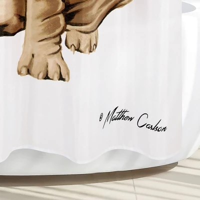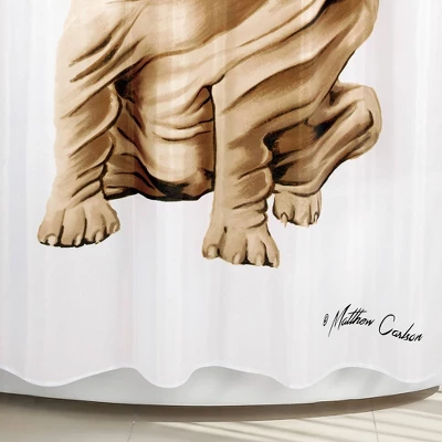 You’ll be blown away by the Fan Dog (© Matthew Carlson) Shower Curtain by Allure Home Creation. This oversized novelty design in multi-colors on a white ground, features an adorable wrinkly Shar Pei pup cooling itself in front of a fan. This puckered pooch is sure to make you giggle whenever you’re in your bathroom. This printed shower curtain measures 70″ x 72″ and fits most standard sized tubs and shower areas providing privacy and protection from water splashing onto the floor. Crafted from 100% easy care plain weave polyester fabric with a reinforced buttonhole top that works well with standard shower hooks and curtain rods. Use of a liner is recommended. Machine wash and tumble dry on low heat.