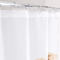 - Reinforced header with 12 buttonhole openings fits standard shower hooks (not included)