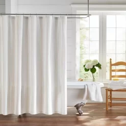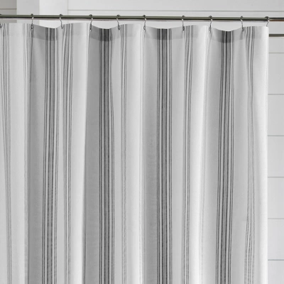 Stylish, rustic and beautiful the Farmhouse Living Collection offers everything you need to create the shabby chic, modern country home. This fashionable shower curtain is made from premium quality cotton and features the perfect stripe pattern in a variety of colors to create the best Farm house look. Soft cotton can be easily ironed to release stubborn creases and make your shower curtain wrinkle free. Delicately hemmed edge adds a finished look and prevents wear and tear. Sold as a single shower curtain measuring 72 inches wide by 72 inches long. Header features 12 button holes; hooks/rings not included. Coordinate to all the items in our Farmhouse Living collection including tablecloths, kitchen towels, and napkins. 100% cotton. Easy care, machine washable.