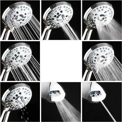 Revolutionary AquaCare hand shower features advanced 8-setting 5-zone and giant 6-setting 6″ shower head that can be used separately or together. Choose from 50 different water flow patterns for a drenching shoulder-to-shoulder shower spa experience. Both heads have Anti-clog Nozzles that prevent accumulation of grime inside. So while other showerheads clog and lose water pressure over time, AquaCare nozzles remain clean and clog-free for years of flawless performance. Tired of that disgusting soap scum and dried hair left behind after each shower? Now you can clean it all in seconds from up to 6 feet away, without setting a foot in your shower. Simply flip the AquaCare handle and turn it into a High-pressure Power Wash! Use Wide Fan to quickly rinse off large areas, or switch to Point Jet and instantly blast away the stubborn grime! AquaCare was designed to be relentless on the toughest grime, yet gentle on your pet. Simply set your faucet to the best water pressure for your dog’s fur length and density, then use our unique Dual-width Fan Spray to thoroughly rinse out shampoo in seconds. It provides the perfect flow pattern for a fast and effortless pet shower, regardless of their size and breed. Easy tool-free installation, no plumber needed. Fits any standard shower arm.