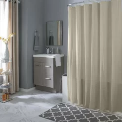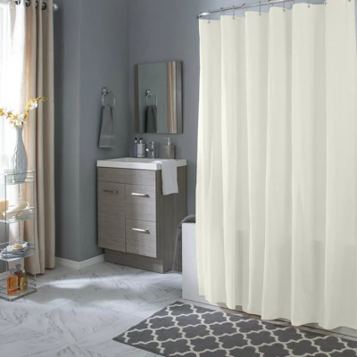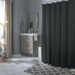 Transform your bathroom into a tranquil spa oasis with the Kate Aurora Spa Essential fabric shower curtain. This elegant shower curtain instantly elevates any bathroom decor with its minimalist, hotel-inspired design. The simple yet sophisticated look features a solid color fabric that adds a serene and calming feel to your space. Crafted from high-quality 100% polyester fabric, this shower curtain is not only soft and luxurious to the touch, but it is also highly durable and long-lasting. The material is easy to care for and machine washable for your convenience, making it a practical addition to your bathroom. With a standard size of 72 inches wide by 72 inches long, this shower curtain fits most standard bathtubs and shower stalls. It is designed with reinforced buttonholes for easy hanging, and the weight of the fabric ensures that it hangs gracefully, providing a clean and polished look to your bathroom. This Kate Aurora Spa Essential fabric shower curtain is available in a variety of serene colors that perfectly complement any bathroom decor, creating a relaxing ambiance that transports you to a luxurious spa. It is an ideal choice for your master bathroom, guest bathroom, or any other bathroom in your home that needs a touch of elegance and tranquility. Upgrade your bathroom with this stylish and practical shower curtain and enjoy a spa-like experience every time you step into your shower.