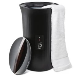 - Hot towel warmer with built-in timer that lets you select 15, 30, 45, or 60 minutes of heat.