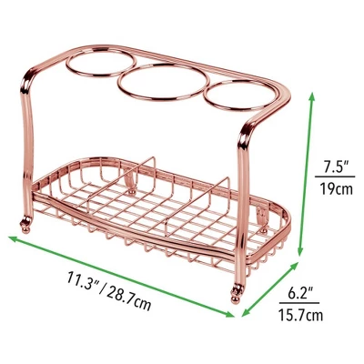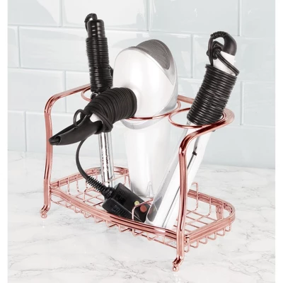 Tangled cords and hard to find hair care tools become a thing of the past with the Countertop Hair Tools Organizer from mDesign. Three compartments hold all the tools you need for a great hair day, while the bottom ledge helps to keep cords organized. The compact organizer sits on bathroom countertops or vanities to keep tools separated and organized without sacrificing space. Use to store tools when not in use, or as a place to let hot tools cool down.
