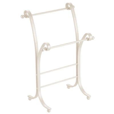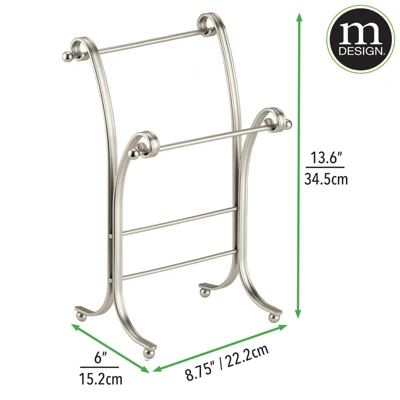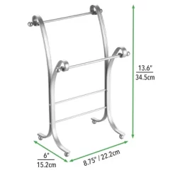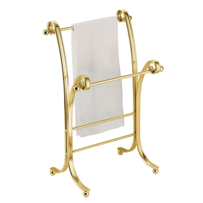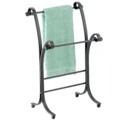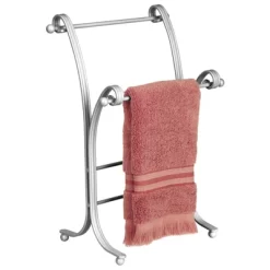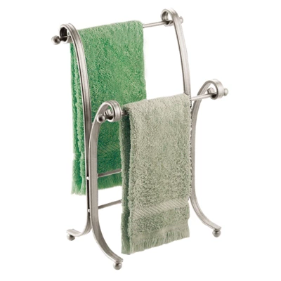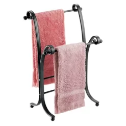 This Towel Holder by mDesign adds decorative style and useful functionality to the bath. Its free-standing design adds two tiers of storage for fingertip towels without requiring any hardware or mounting to a wall or door. It features two bars that are placed at different levels for beautiful presentation.