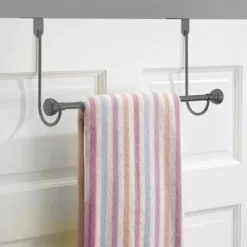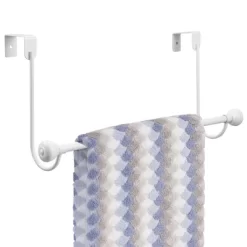 The mDesign Over Door Bath Towel Bar Holder is the perfect storage solution to the out-of-reach bath towel. The stylish design of this towel bar adds a modern look to any bathroom motif, while its open design keeps towels at the ready for you or your guests. Install over the shower door, or hang on a bedroom or closet door to help damp towels dry.