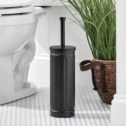 Keep your bathroom neat and clean with this Bowl Brush and Wastebasket Combo Set by mDesign. The rectangle wastebasket trash can is perfect for collecting garbage or recycle items at the bathroom vanity or next to the toilet. The toilet bowl brush features a stylish housing to conceal your cleaning tool when not in use and cleans under the bowl rim and in hard-to-reach areas! The sleek, textured design adds style to any decor. mDesign – Solutions for home. Solutions for life.
