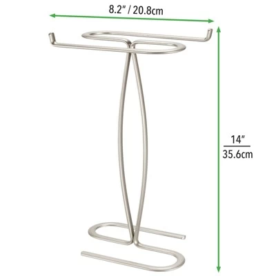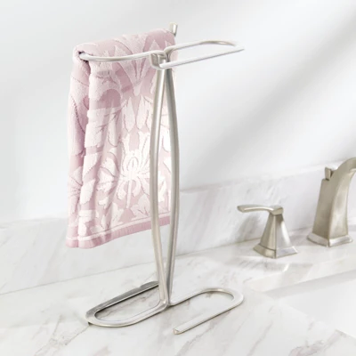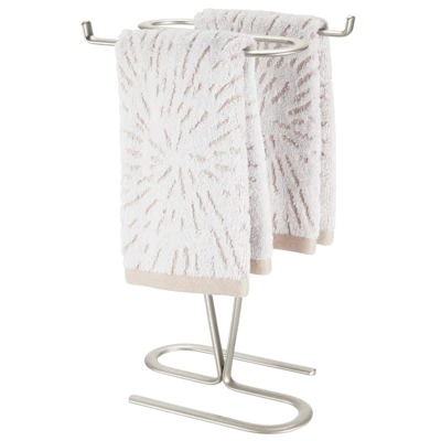 This Towel Holder by mDesign adds decorative style and useful functionality to the bath. Its free-standing design adds two sides of storage for hand or fingertip and towels without requiring any hardware or mounting to a wall or door. It features two open bars that make hanging towels on them quick and easy while creating a beautiful presentation.