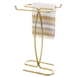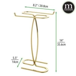 This Towel Holder by mDesign adds decorative style and useful functionality to the bath. Its free-standing design adds two sides of storage for hand or fingertip and towels without requiring any hardware or mounting to a wall or door. It features two open bars that make hanging towels on them quick and easy while creating a beautiful presentation.