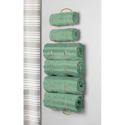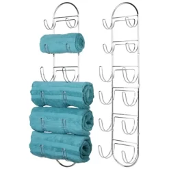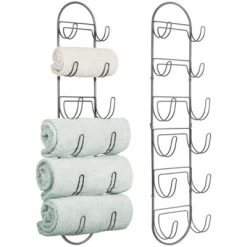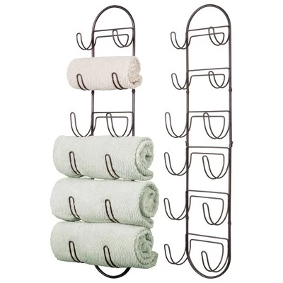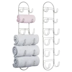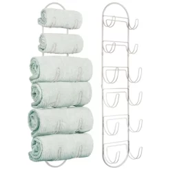Add the feeling of hotel luxury with the Wall Mount Towel Storage Rack from mDesign. Great for storing full sized bath towels or bath sheets, hand towels and face towels either in your main bath or in a guest bathroom. Each arm is stylishly designed to hold towels and keep them securely in place but readily accessible for you or your guests! Its tiered design is a great space saver and easily mounts to a wall with the included hardware.