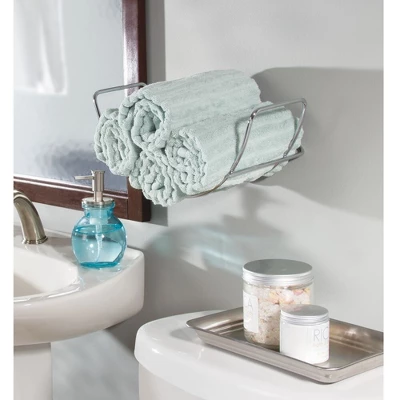The mDesign Wall Mount Towel Holder will ensure that towels are always at your fingertips in the bathroom or anywhere in the home. The stylish curves of this holder adds a modern look to any bathroom motif while its open design keeps fresh, clean towels at the ready for you or your guests. Hardware is included to make installation quick and easy.