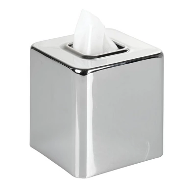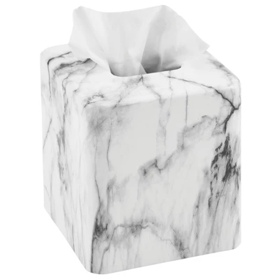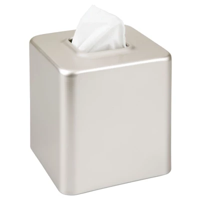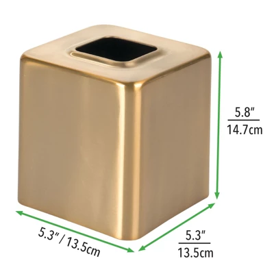 Dress up boring, square tissue boxes, while adding a decorative touch to your bathroom vanity with the Tissue Box Cover from mDesign. Fits over standard-sized tissue boxes and the open bottom making refilling easy. The opening in the top is large enough to make grabbing tissues easy while still hiding colored cardboard tissue boxes. The modern design adds a decorative touch to your decor.