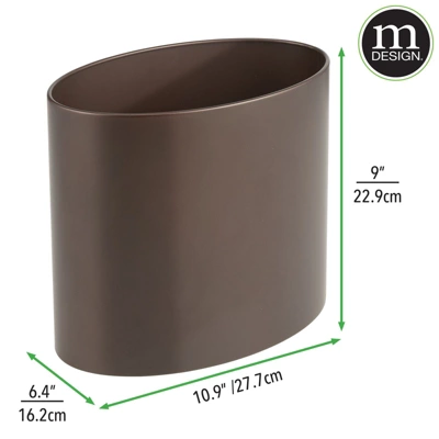 The mDesign metal trash can wastebaskets are sized perfectly for smaller spaces but still have plenty of room for your recyclables and garbage. Made of high-quality durable materials, this can will hold up to everyday use. It can be used for trash, recycling, or storing household items. The slim oval design combined with the modern finishes makes it the perfect complement to any home.