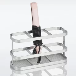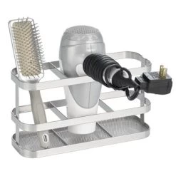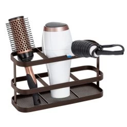 Sort and Organize hair styling tools and products with this Countertop Hair Care Organizer by mDesign. Three divided compartments hold all the tools you need for a great hair day, while the bottom ledge keeps items secure. This caddy organizer sits on countertops or vanity and makeup tables to optimize storage and reduce clutter. Easily keep straightener, curling iron, curling wands, styling brushes tucked in their own space and their cords stowed away to keep from tangling together. The compact design lets you maximize your storage without cutting into already limited bathroom space. Use this caddy organizer for brushes, combs, all of your styling tools, and even your favorite products. mDesign – Solutions for Home. Solutions for Life.